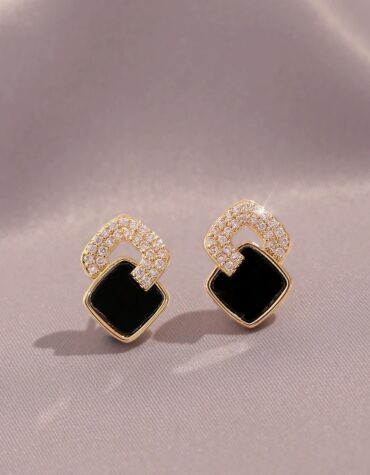Women’s Cross Black Small Square Earrings Versatile Gift