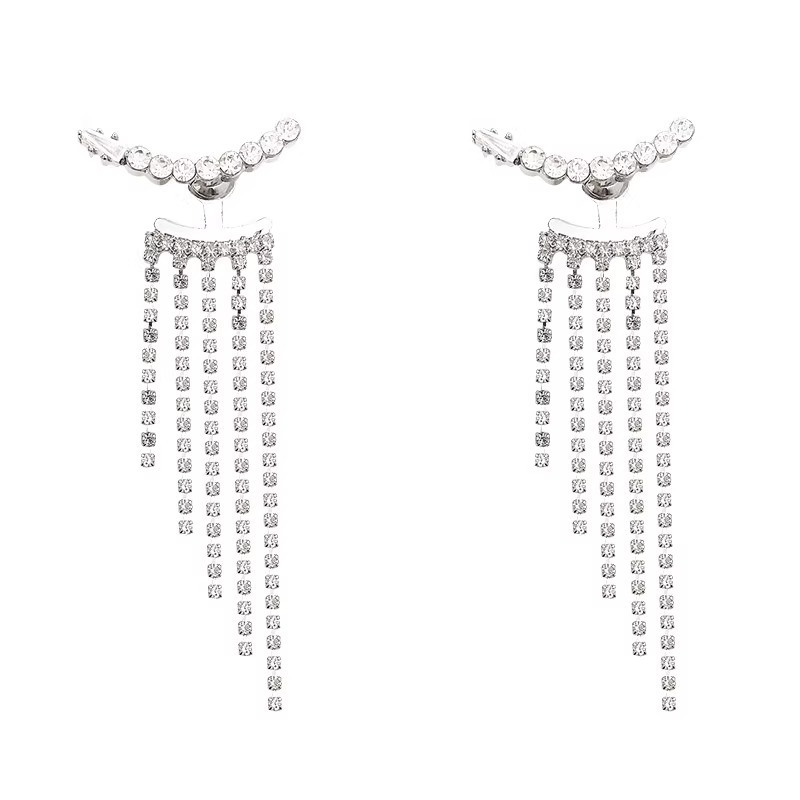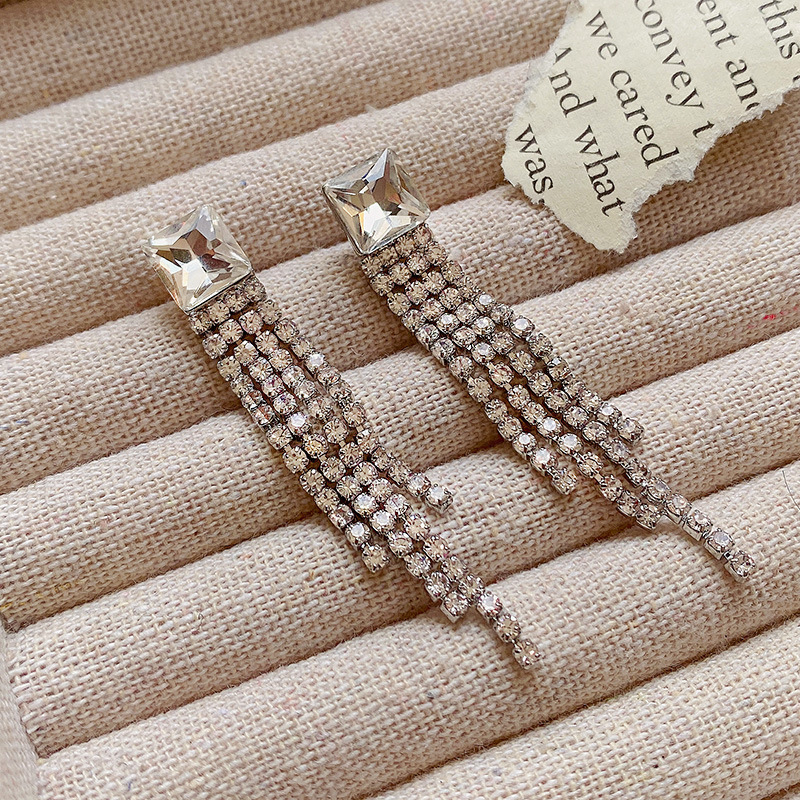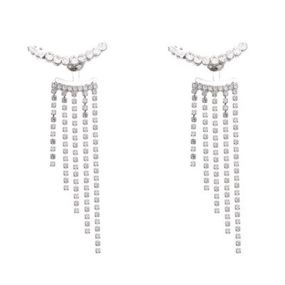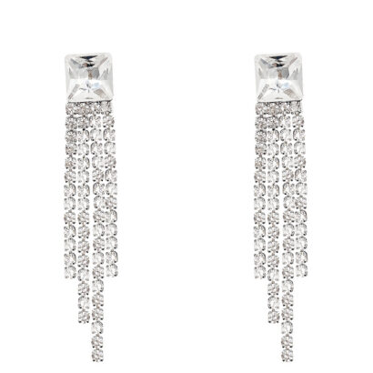 Be the first to review “Sterling Silver Needle Sparkling Long Fringed Zircon Earrings”